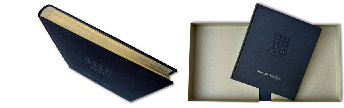 Bei besonderen Anlässen werden den Ehrengästen Goldene Bücher vorgelegt. Wie binden Ihres in bestechender Qualität und vollendetem Stil.